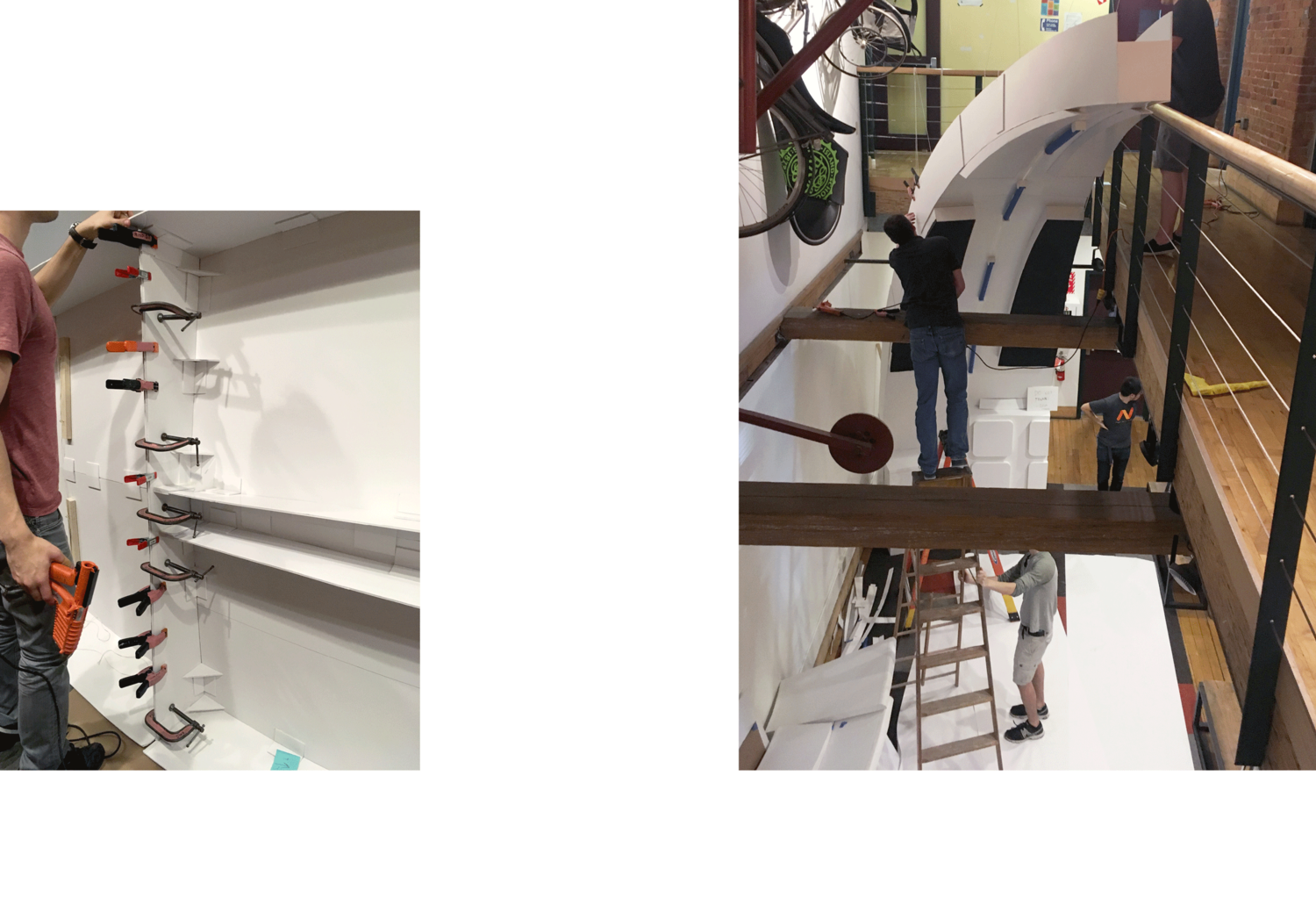 A fraction of the dome was physically constructed with foam core and erected at 1:1 scale to test proportions and usability; in addition, a digital model of the interior was tested at Brown University’s YURT, a virtual reality theater with 360º projection surface.